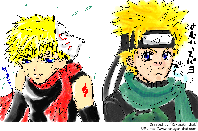 シカを描いたらナルを描かねばなるまいて。という事でナルトを描いてもらいましたvvむふ。寒いなら温めてあげるよ、なるちょさん(笑)vv